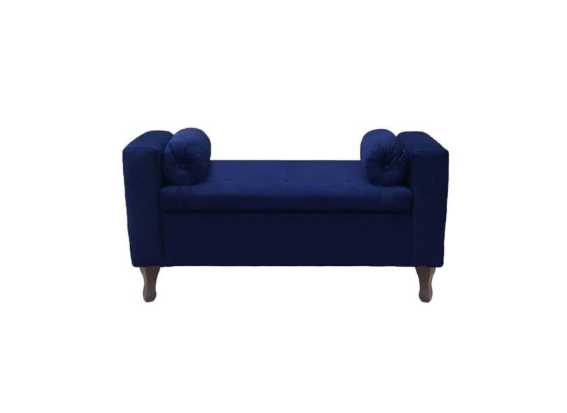 Recamier Bau Rico 160x Cama Queen Size Suede Azul Marinho - Majú Decor