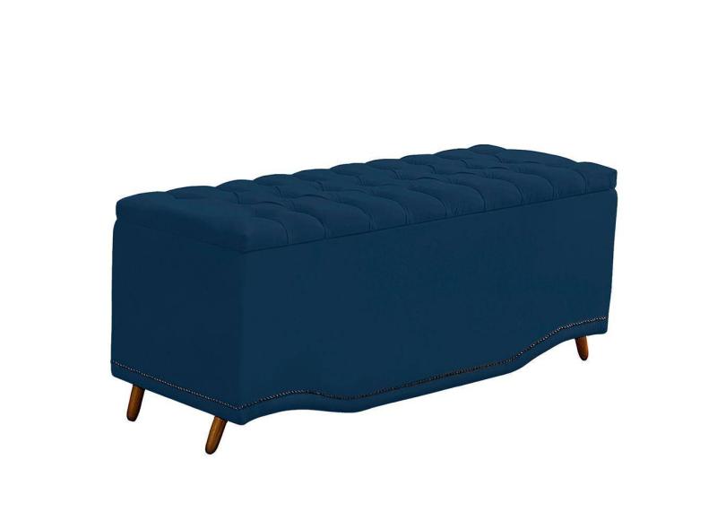 Recamier Calçadeira Baú Belize Casal 140cm Veludo Azul Marinho - Montanaris Decor