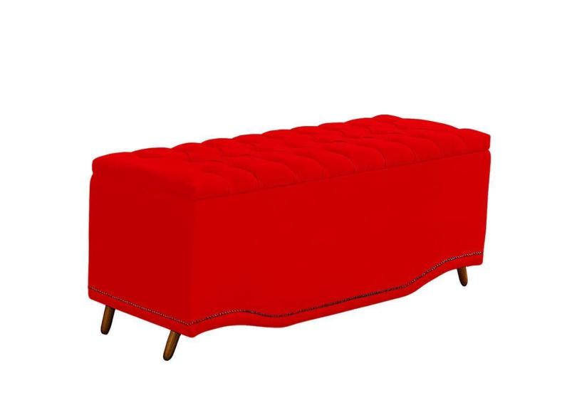 Recamier Calçadeira Baú Belize Casal King 195cm Veludo Vermelho - Montanaris Decor