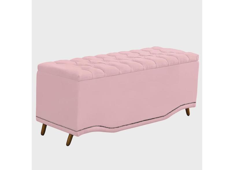 Recamier Calçadeira Baú Belize Casal Queen 160cm Veludo Rosa Bebê - Montanaris Decor