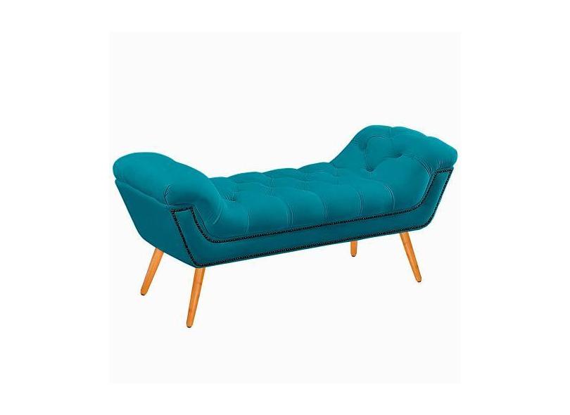 Recamier Calçadeira Casal King 195cm Ayla Veludo Azul Turquesa - Monta
