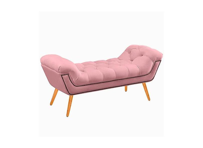 Recamier Calçadeira Casal Quenn 160cm Ayla Veludo Rosa Bebê - Montanar
