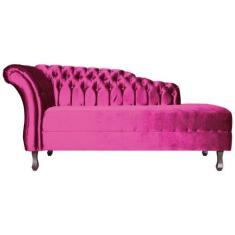 Recamier Decorativo Divã Styllus Lado Direito Veludo Rosa Pink Pés Mad
