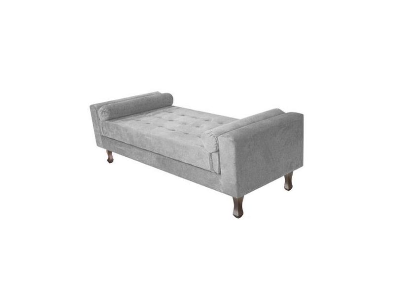 Recamier Divã Baú 195 Cm Estofado Luiz Xv Sofá Suede Cinza Para Sala D