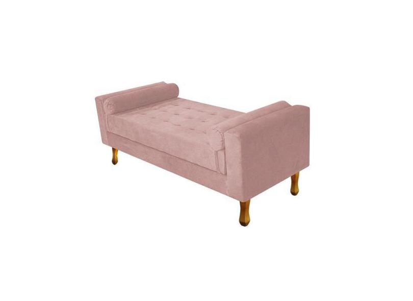 Recamier Divã Félix Baú 120 Cm Estofado Luiz Xv Sofá Suede Rosê Para S