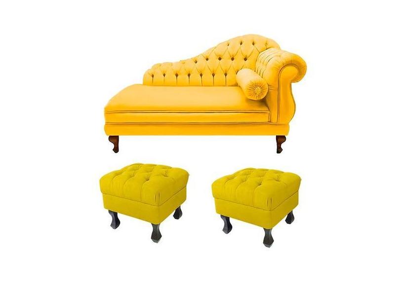 O menor preço encontrado no Brasil para Recamier Divã Namoradeira Larissa 150cm + 2 Puffs Retrô Suede Amarelo atualmente é R$ 1.630,22.