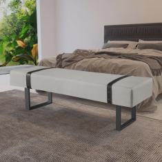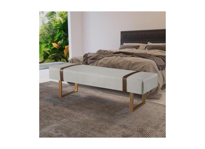 Recamier Em Linho 150cm Com Pés De Metal E Material Sintético Off Whit