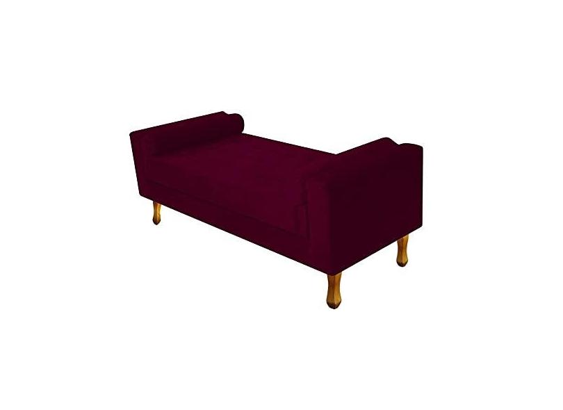 Recamier Félix Divã Baú 100 cm Estofado Luiz XV Sofá 2 Lugares Suede Bordô Para Sala de Estar Consultório Quarto Recepção Escritório - AM Decor