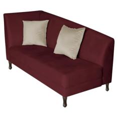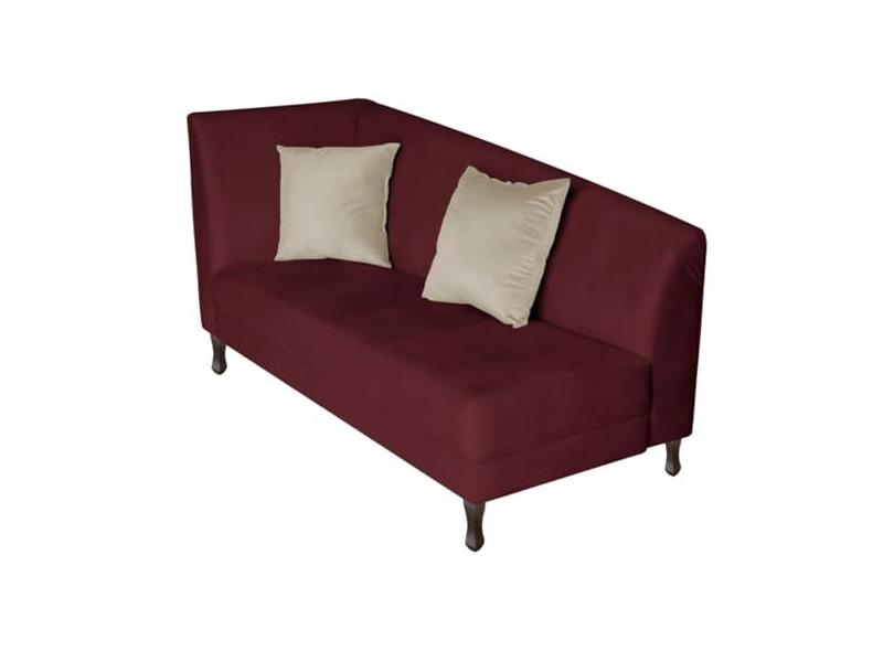 Recamier Heitor 140cm com Almofada Lado Direito Suede Bordô/Bege