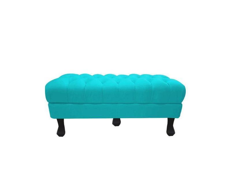 Recamier Luis Xv Capitonê Retrô 180cm Suede Azul Tifany Pés Madeira Mz