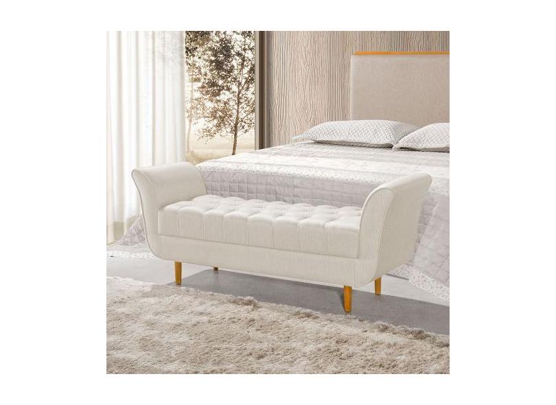 Recamier Pés Palito em Madeira Marajó 1,30m Capitonê Linho Crú - VILLA