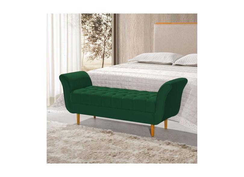 Recamier Pés Palito Em Madeira Marajó 1,30M Capitonê Veludo Verde - Vi