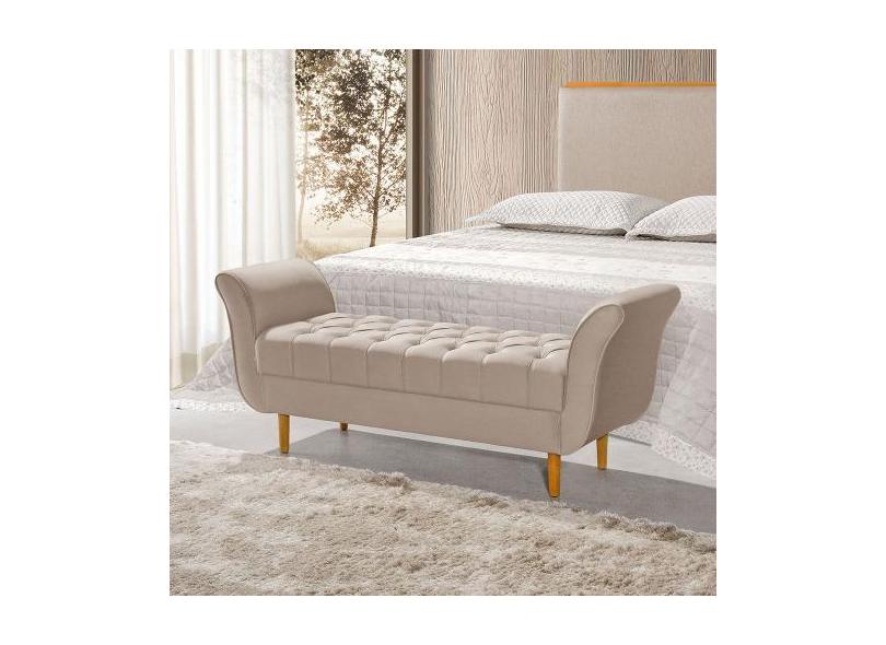 Recamier Pés Palito em Madeira Marajó 1,50m Capitonê Veludo Bege - VIL