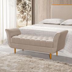 Recamier Pés Palito Em Madeira Marajó 1,83m Capitonê Linho Bege