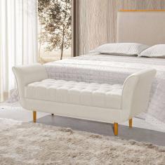 Recamier Pés Palito Em Madeira Marajó 1,83M Capitonê Linho Crú - Villa