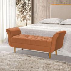 Recamier Pés Palito Em Madeira Marajó 1,83M Capitonê Veludo Terracota