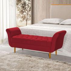 Recamier Pés Palito em Madeira Marajó 1,83m Capitonê Veludo Vermelho