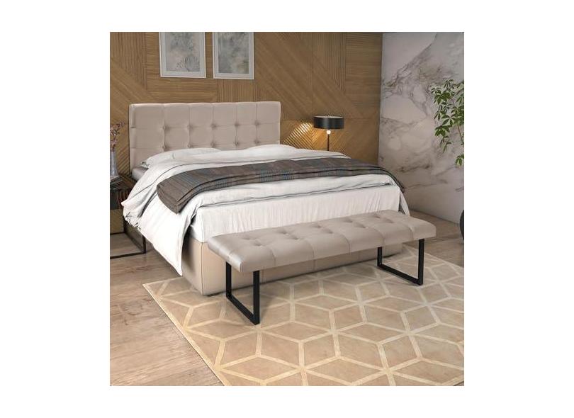 Recamier Sapateira e Cabeceira Casal Estofada Dacar Linho Areia