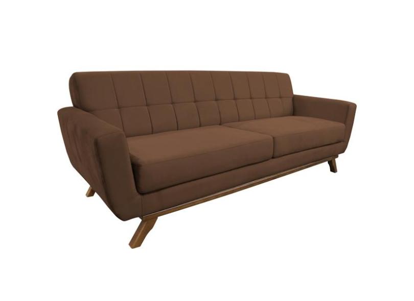 Sof 04 Lugares 230cm Com Base De Madeira Miami Veludo Marrom
