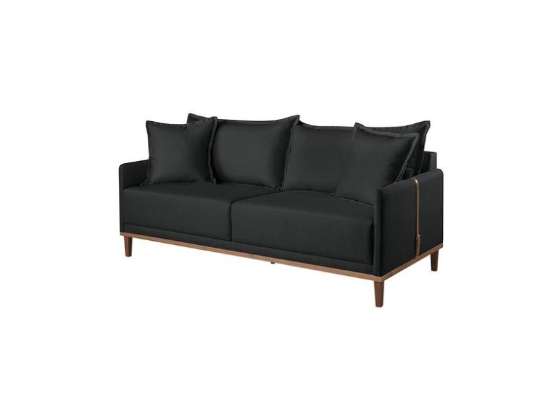 Sof 3 Lugares Almofada Solta Base Madeira Veludo Preto Mait