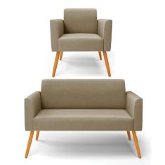 Sof Namoradeira Com Poltrona P s Palito Castanho Marisa Sued