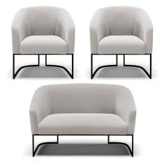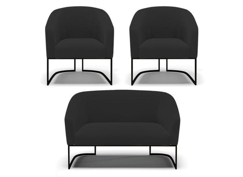 Sof Namoradeira E 2 Poltronas Base Industrial Preto Stella V