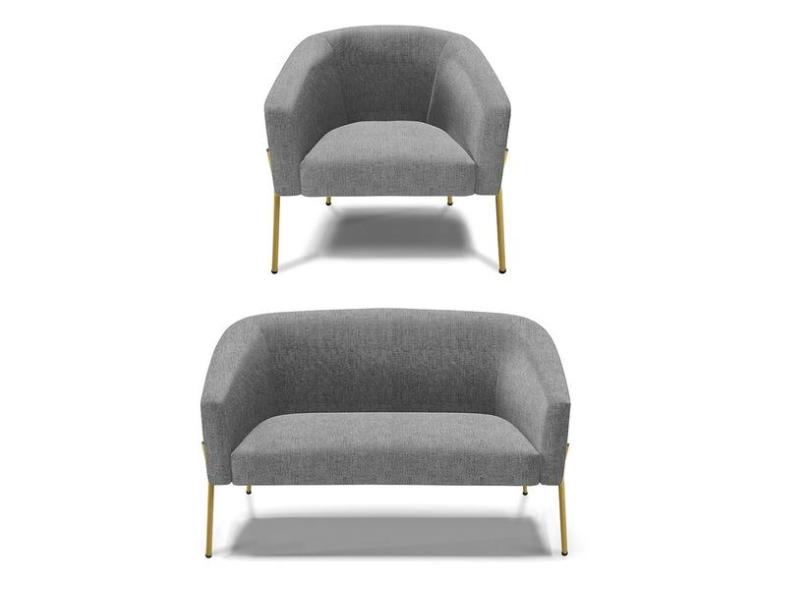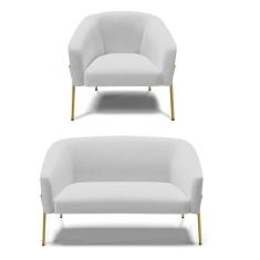 Sof Namoradeira E Poltrona P De Ferro Dourado Stella Linho