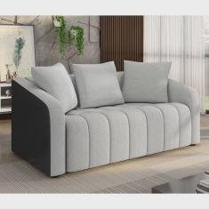 Sofá 02 Lugares Assento Fixo e Encosto com Almofadas Soltas Tóquio Preto/Cinza
