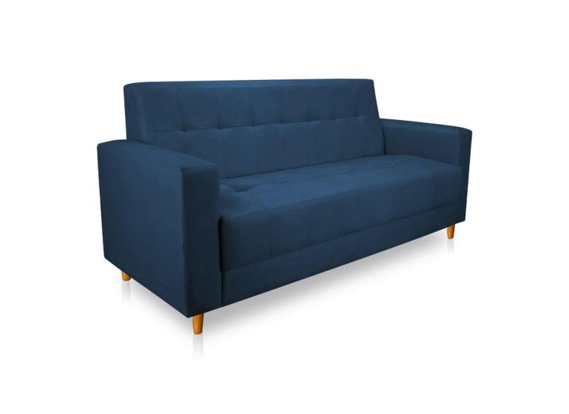 Sofá 03 Lugares 180cm Atenas Suede Azul Marinho Pés Castanho - Pallazio