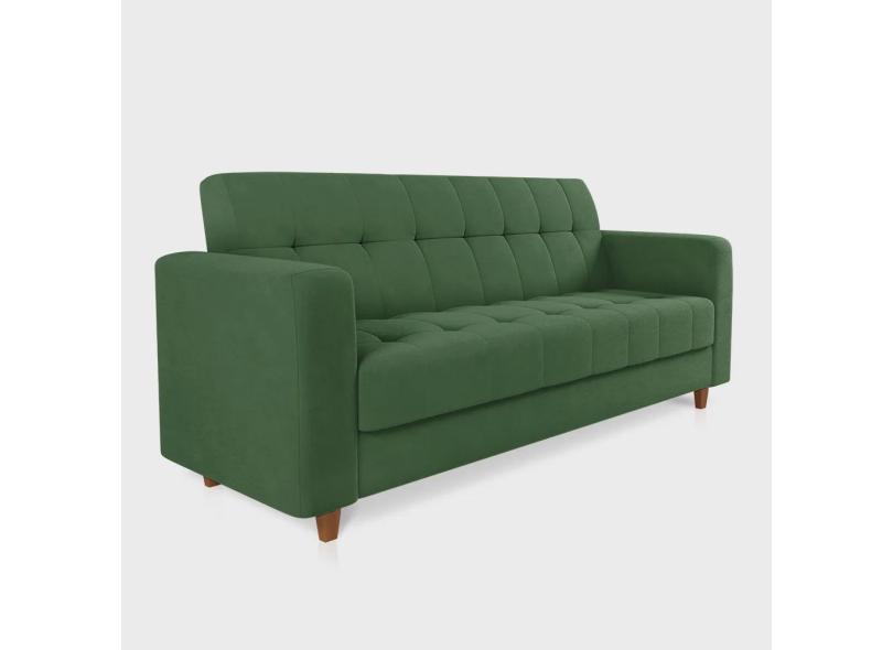 Sofá 03 Lugares Arezzo Suede Verde Pés Chanfrado Castanho - D'Rossi