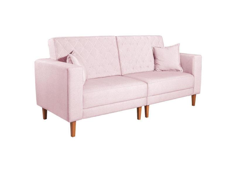 Sofá 03 Lugares Living Ponza Suede Cor Rosa Bebê