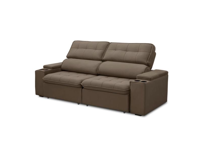 Sofá 2,1M Retrátil Reclinável Veludo Ferguile Genebra Marrom