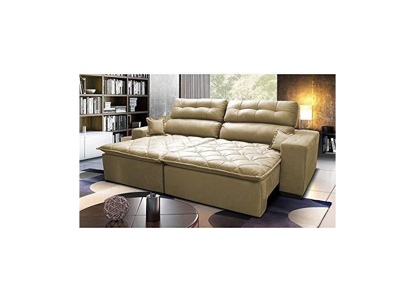 Sofá 2,42m Retrátil e Reclinável com Molas Cama Inbox Confort Tecido Suede Velusoft Bege