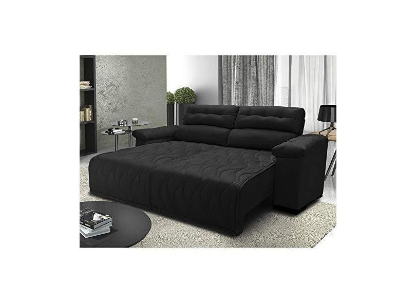 Sofá 2,72m Retrátil e Reclinável com Molas Cama Inbox Top Tecido Suede Velusoft Preto