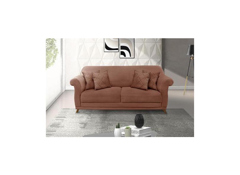 Sofá 2 Lugares 1,60 M Veludo Cobre Com Pés De Madeira E 2 Almofadas An