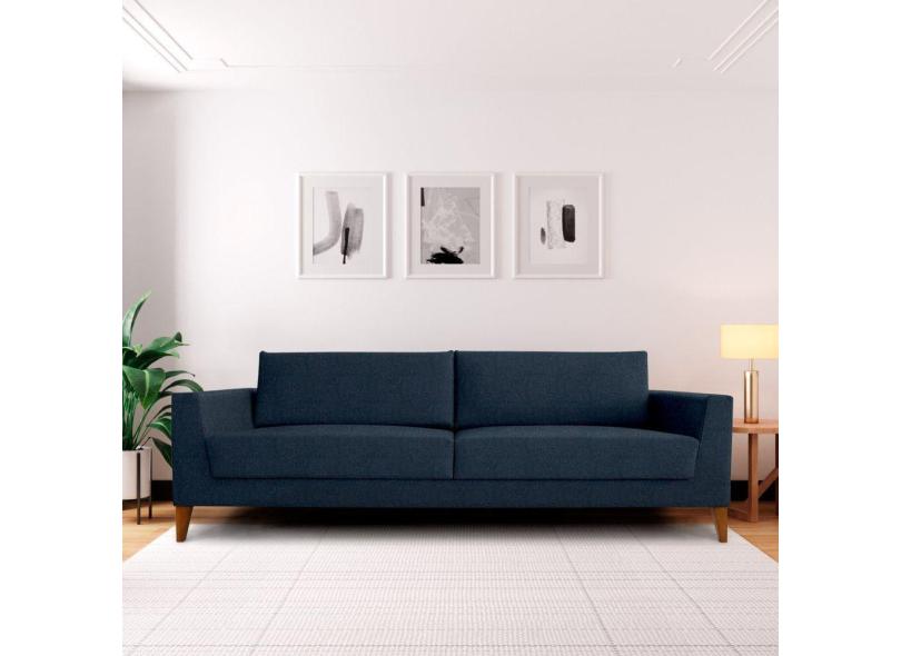 Sofá 2 Lugares 180cm Break Estilo Moderno Linho Pés em Madeira Maciça Azul Jeans