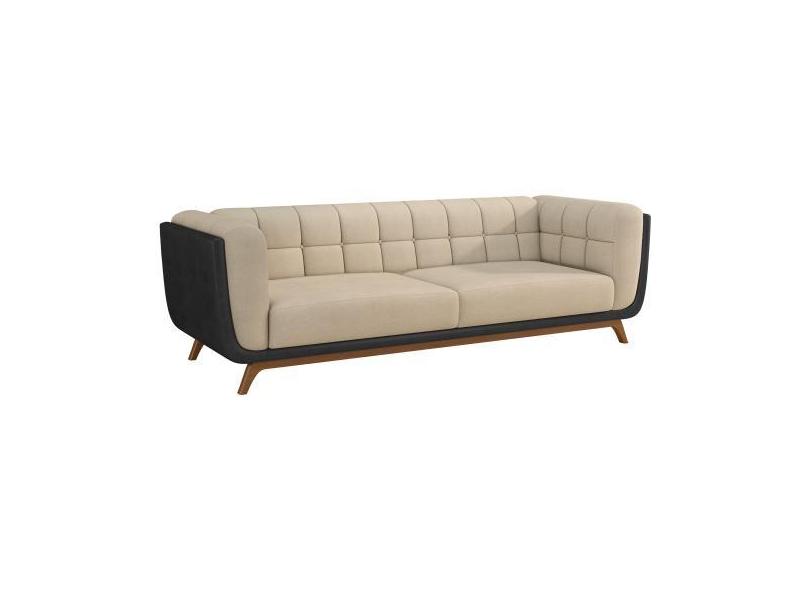 Sofá 2 Lugares 180cm Coin PU Preto Bouclé Suave Off White - Sallar Ho