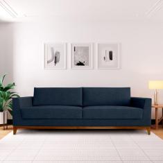 Sofá 2 Lugares 180cm Movie Estilo Moderno Linho Pés em Madeira Maciça Azul Jeans