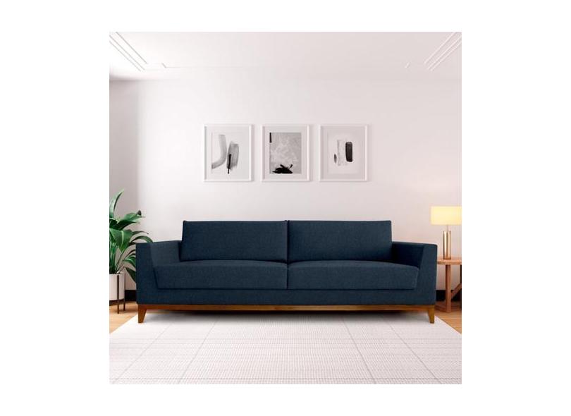 Sofá 2 Lugares 180cm Movie Estilo Moderno Linho Pés Em Madeira Maciça