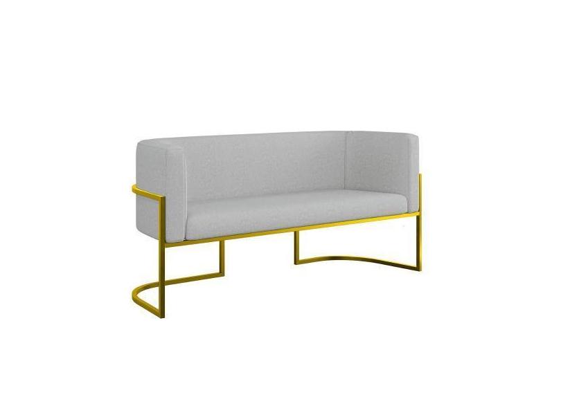 Sofá 2 Lugares Base Metal Dourada Reforçada Recepção Bouclê - B BALAQU