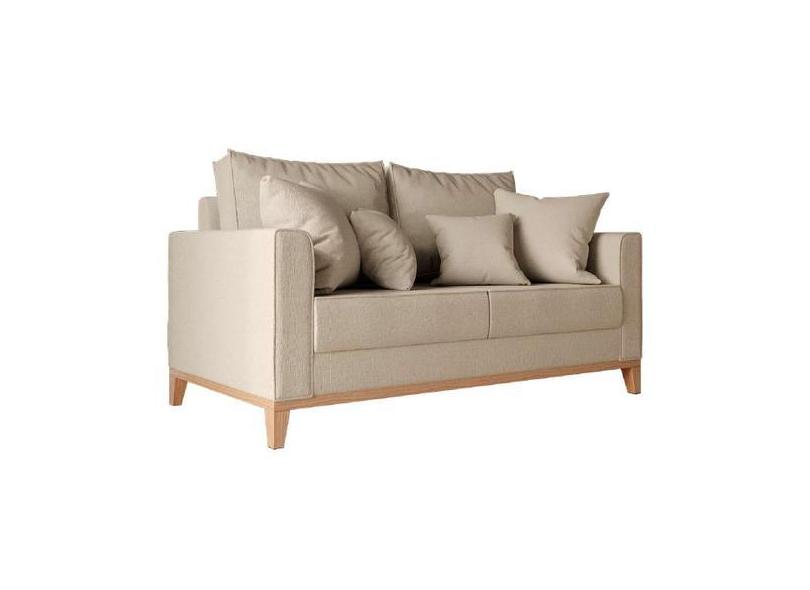 Sofá 2 Lugares Beny Base em Madeira Maciça Recepção Linho Bege Kimi De