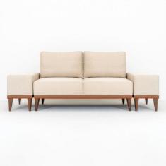 Sofá 2 Lugares e 2 Puffs em Linho Boreal com Mola Ensacada CabeCasa MadeiraMadeira