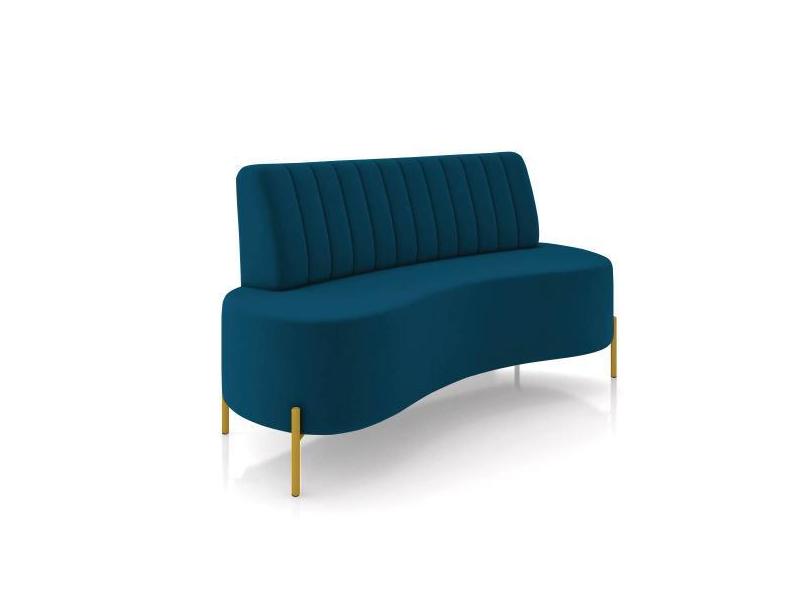 Sofá 2 Lugares Living 135cm Pé Ferro Dourado Maraú Veludo Azul Mnh K01