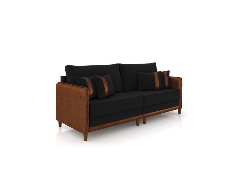 Sofá 2 Lugares Living 172cm Pé Madeira Valença Marrom/Veludo Preto K01