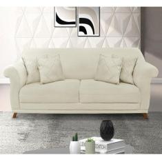 Sofá 2 Lugares Lorena Veludo 1,60m Pés Em Madeira Maciça - Bege Bege