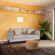 sofá 2 lugares mscar base de madeira linho cotton cru