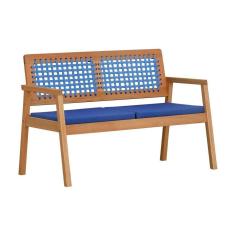 Sofá 2 Lugares-namoradeira Garden Madeira Maciça Assento Estofado Encosto Trançado Corda - Natural Acquablock Azul