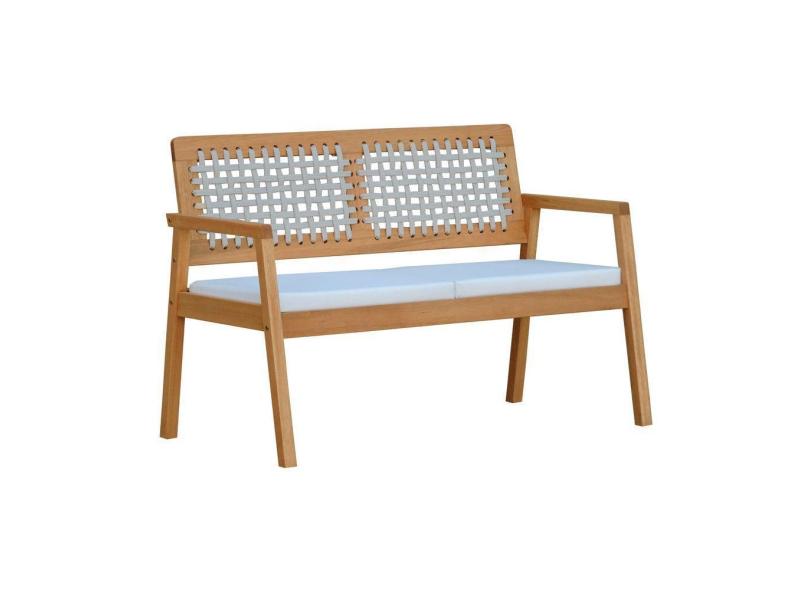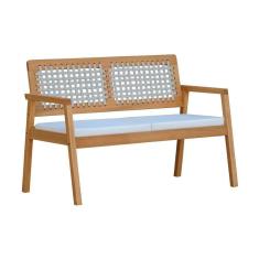 Sofá 2 Lugares-namoradeira Garden Madeira Maciça Assento Estofado Encosto Trançado Corda - Natural Acquablock Bege