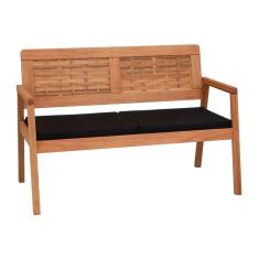 Sofá 2 Lugares-namoradeira Garden Madeira Maciça Assento Estofado Encosto Trançado Madeira - Natural Acquablock Preto