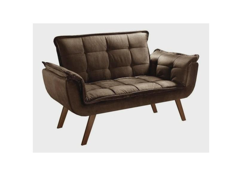 Sofá 2 lugares namoradeira opala marrom pés de madeira